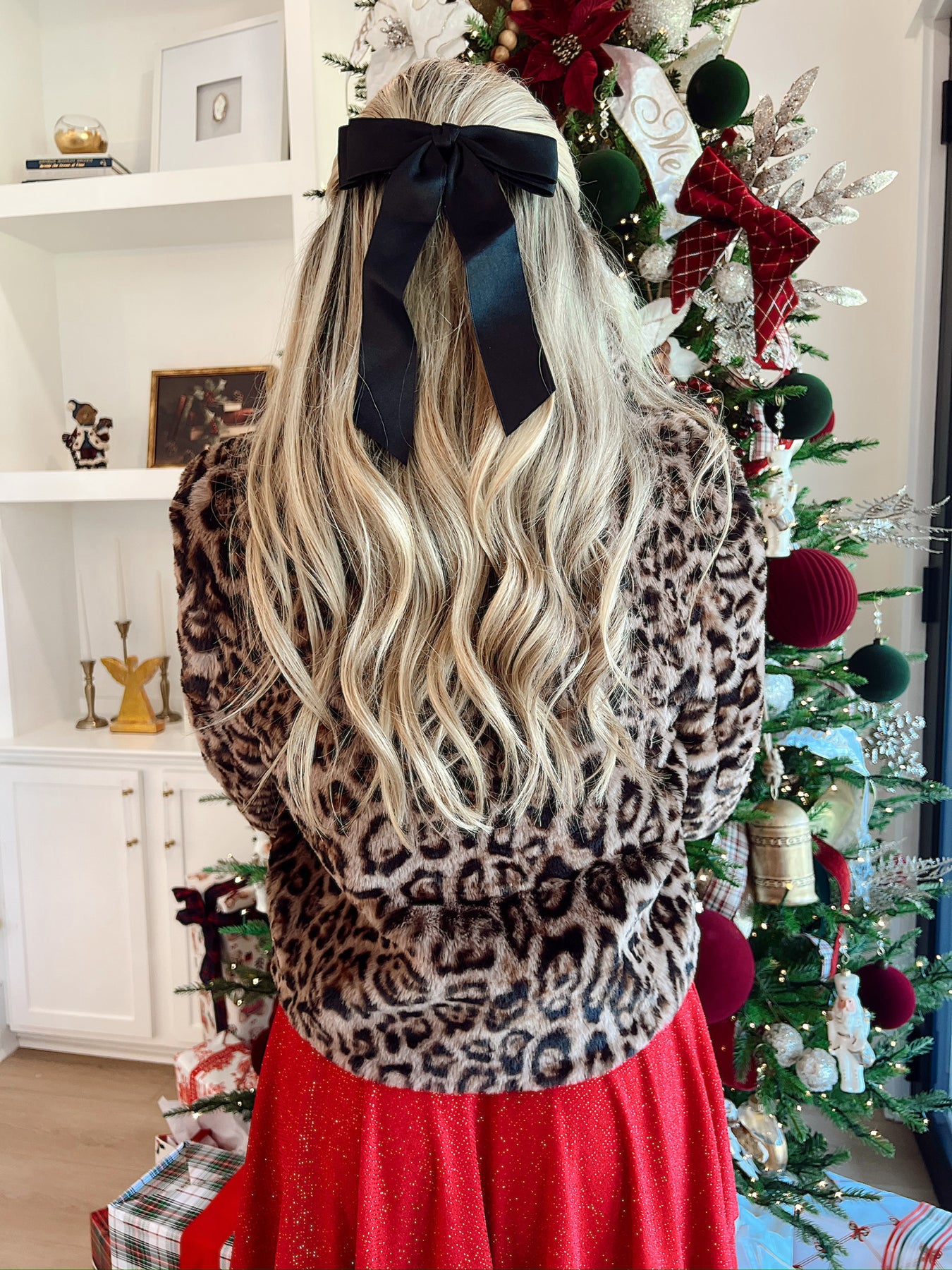 This faux fur jacket features a collared neckline, leopard print, front slit pockets, fully lined, and cropped length.
