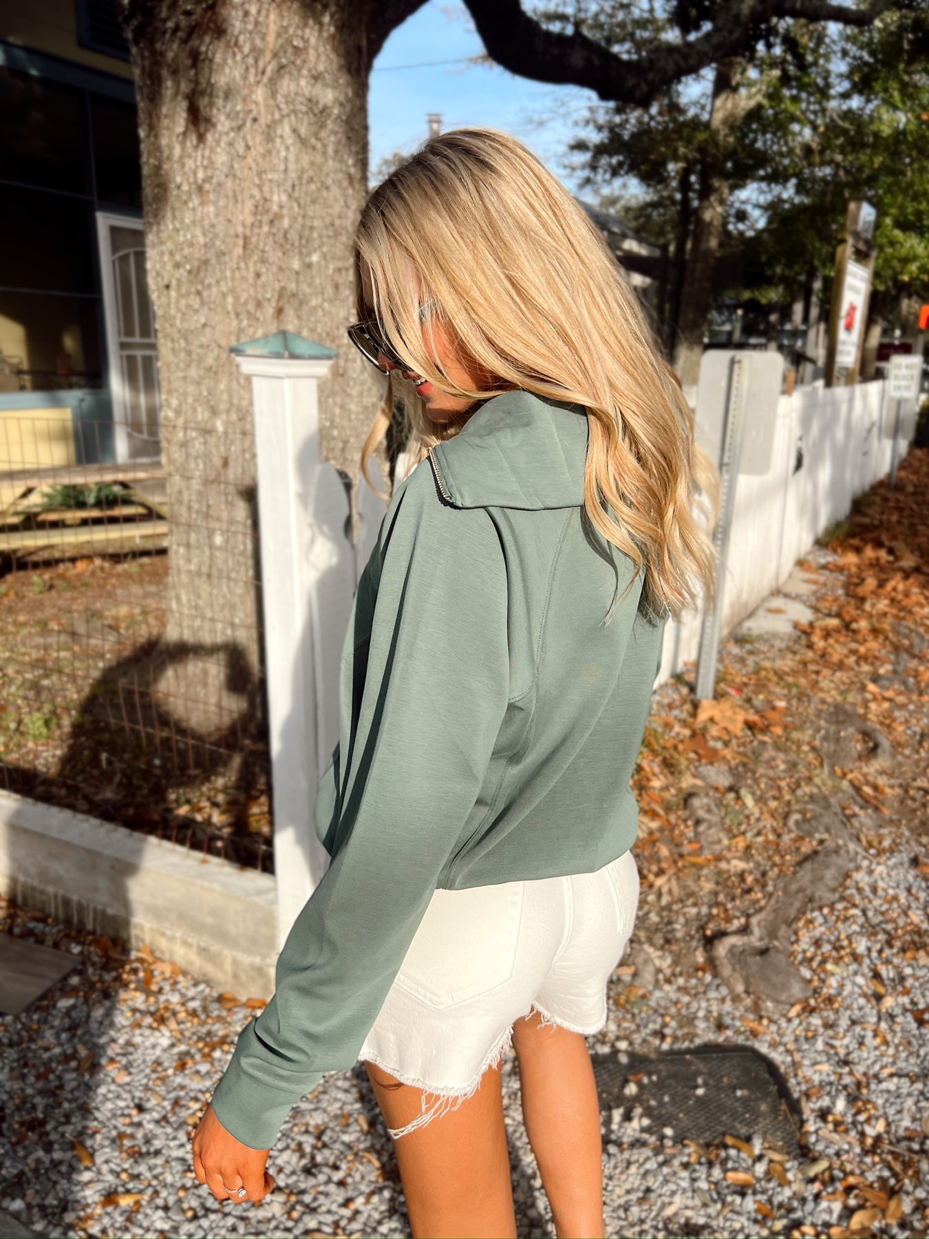 This scuba quarter zip pullover features silver zipper, seam details, and long sleeves.