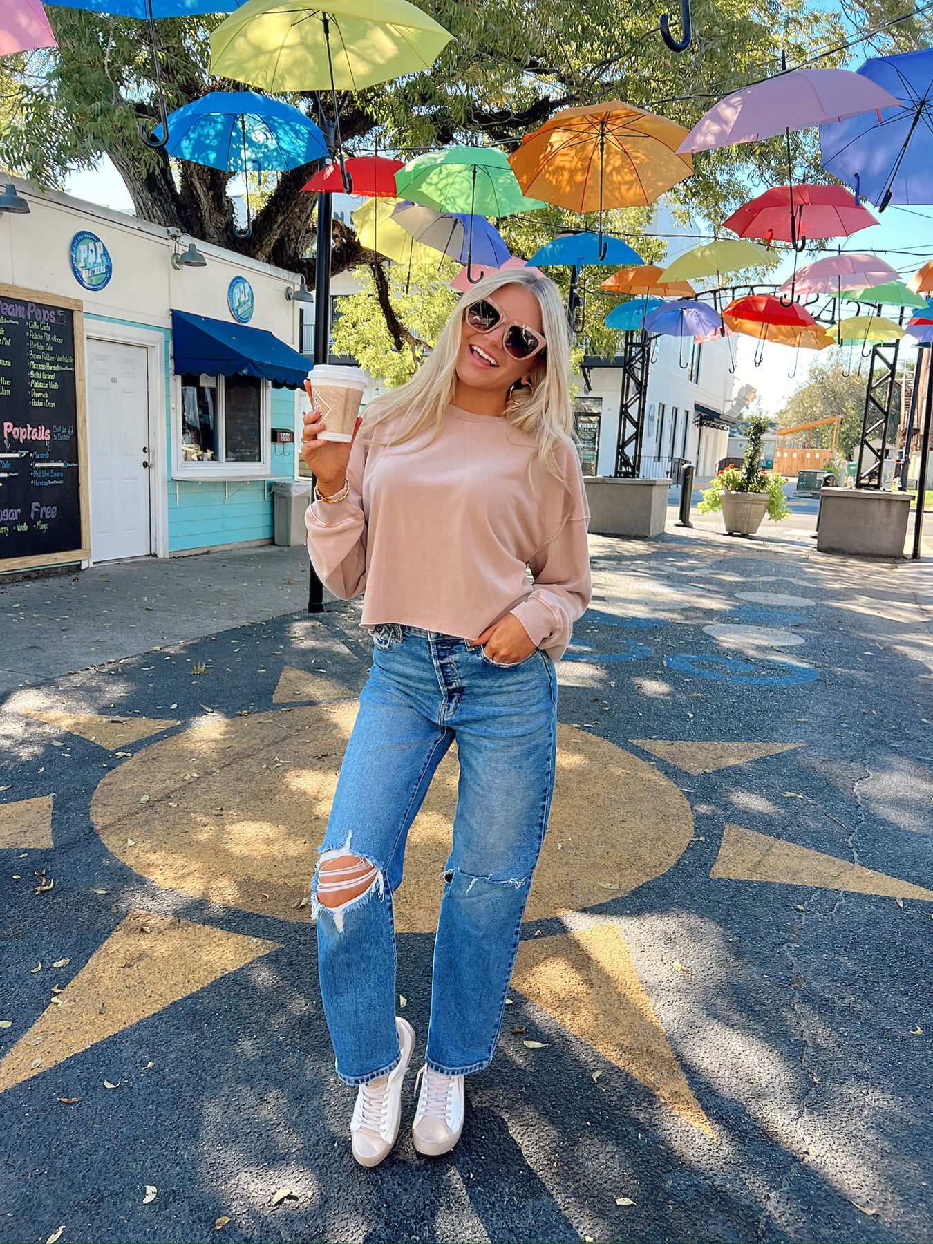 These denim jeans feature belt loops, five working pockets, top button with zipper closure, distressed detail, dad fit and high rise.