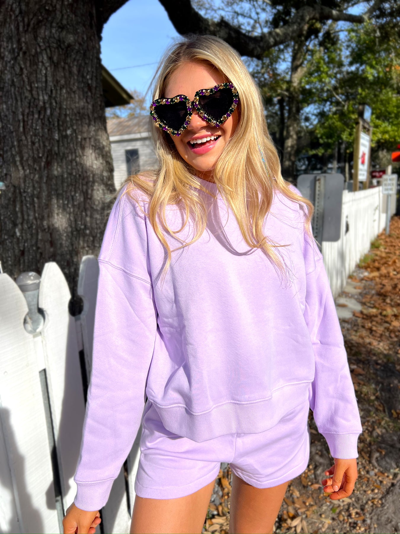 The top features crew neckline, long sleeves, relax fit, and ribbed cuffs.