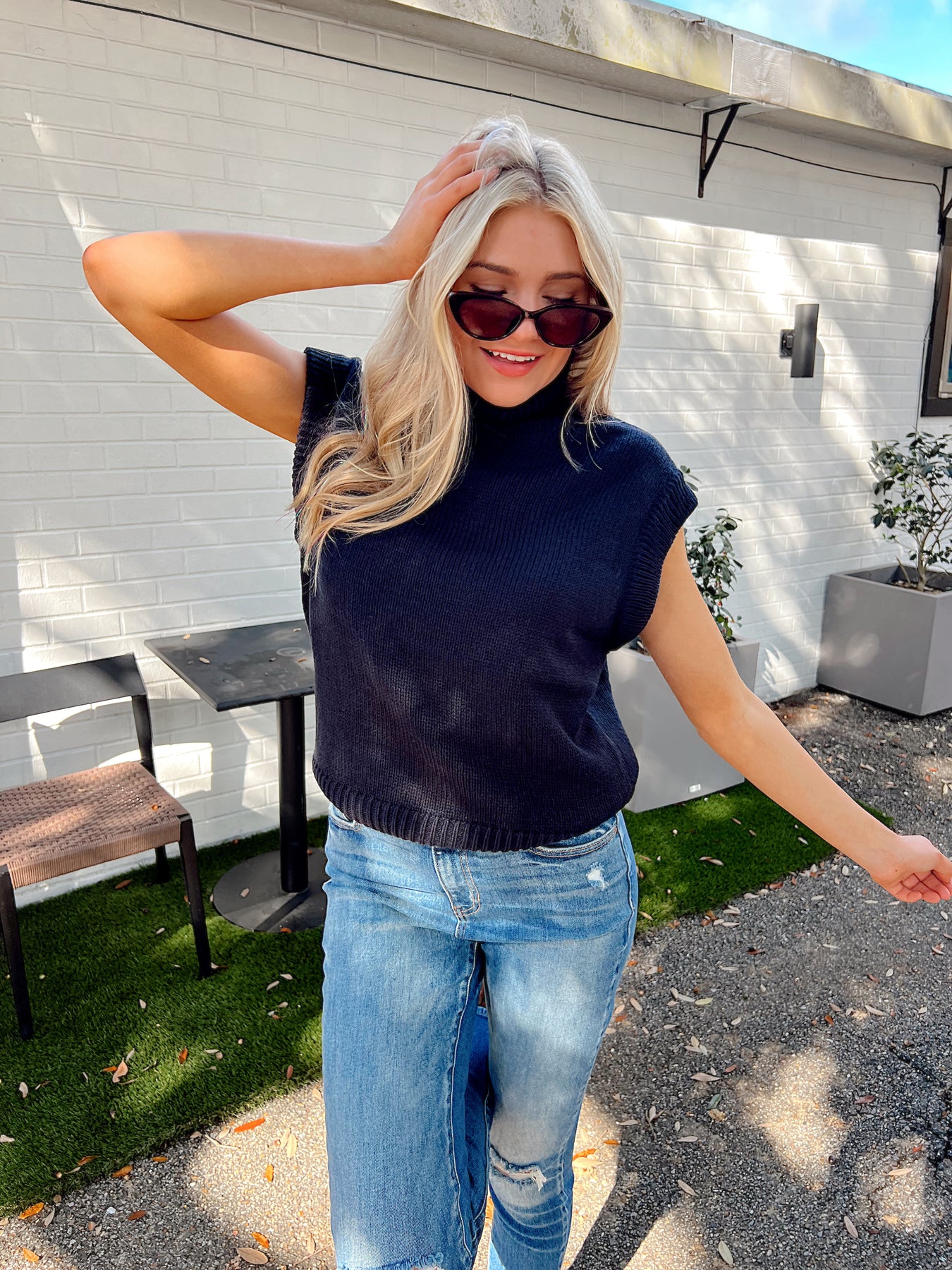 This top features turtleneck, short sleeves with wide cuffs, relax fit, and knitted material.